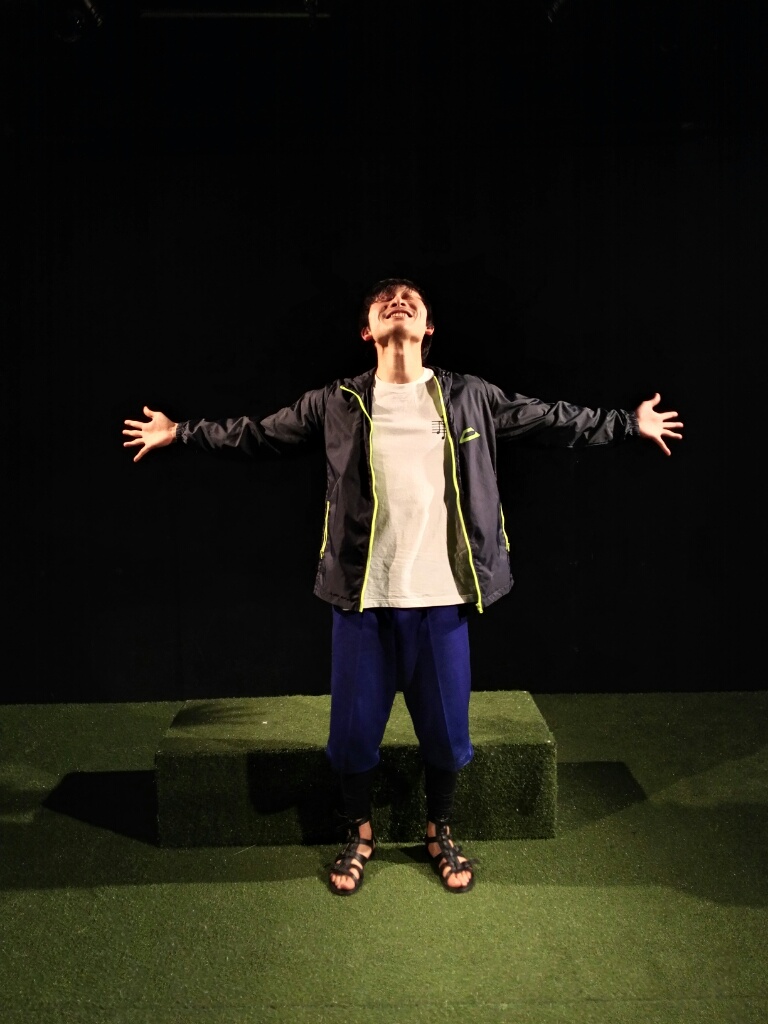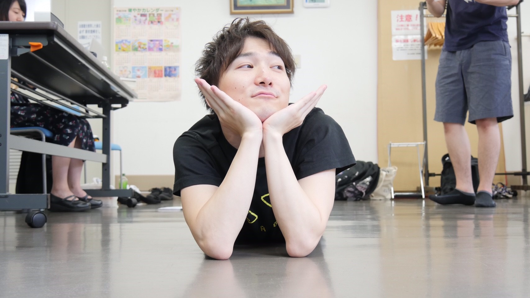 本番直前のちゃんとした返し稽古で顔面の体操をするタインド鈴木