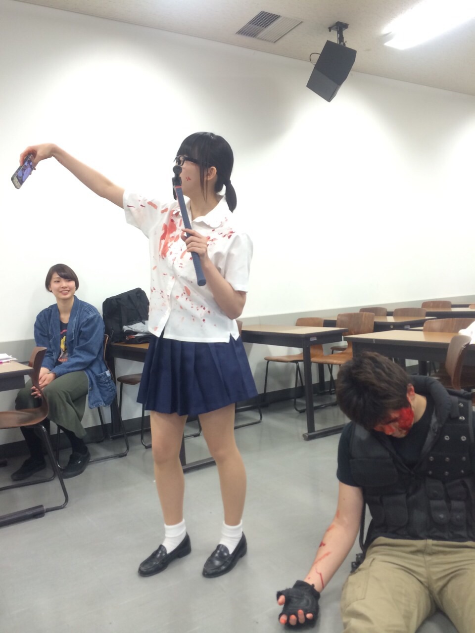 以下、脚本に追われ寝不足の私が稽古場で寝ている間に勝手に私のスマホで撮影された、芦澤知鼓さんの自撮りコレクションです。
