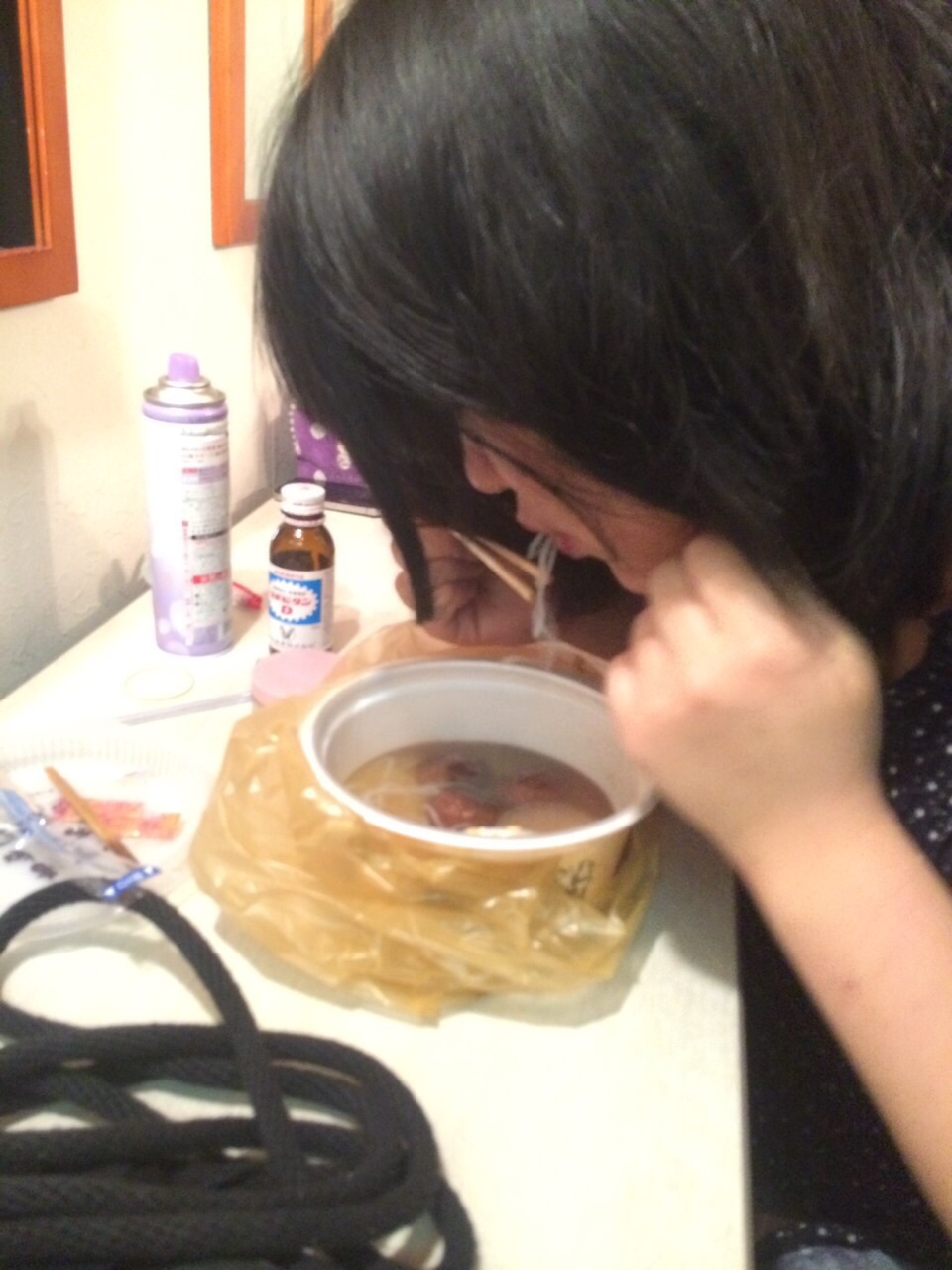 屋台のラーメンをすすっている仕事上がりのOLに見えて思わず写真を撮ってしまいました。
