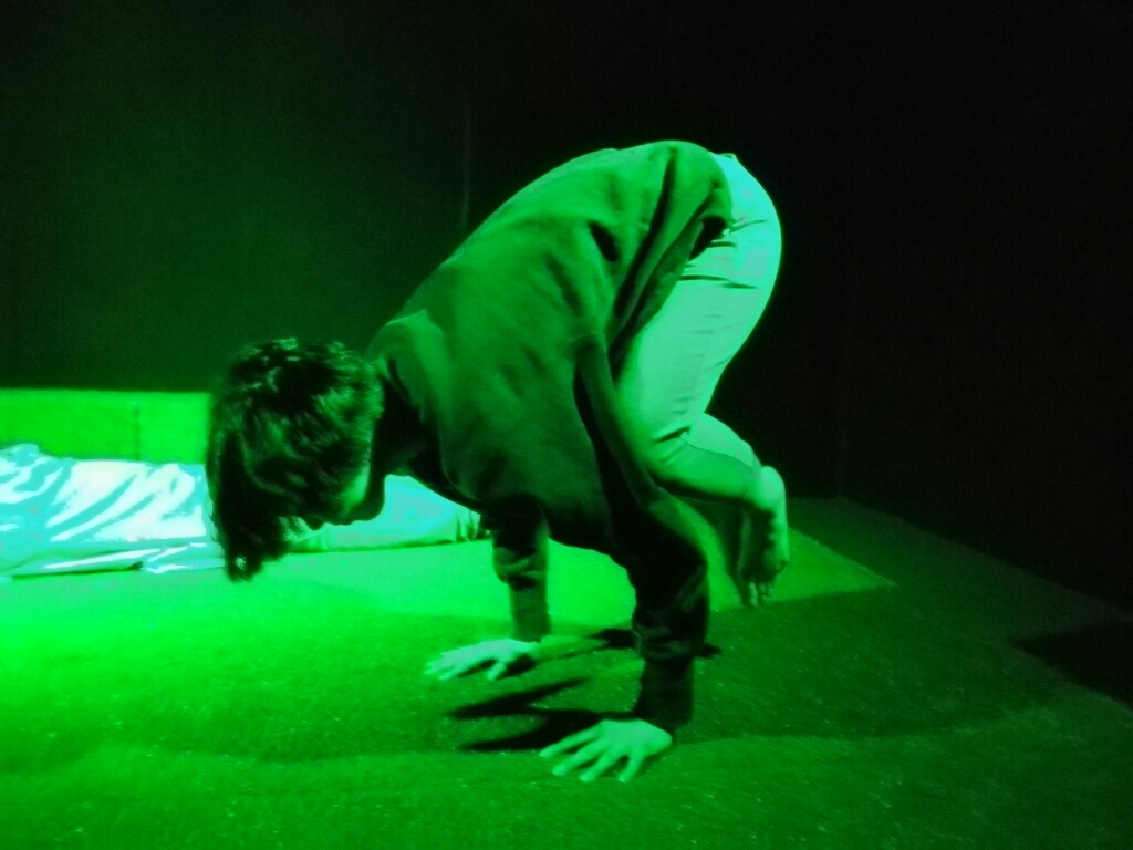 本番直前のちゃんとした返し稽古で顔面の体操をするタインド鈴木
